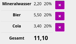 To remove an item, click the X icon on the right side of the corresponding entry. The item will then be removed from the invoice. ![]() | |